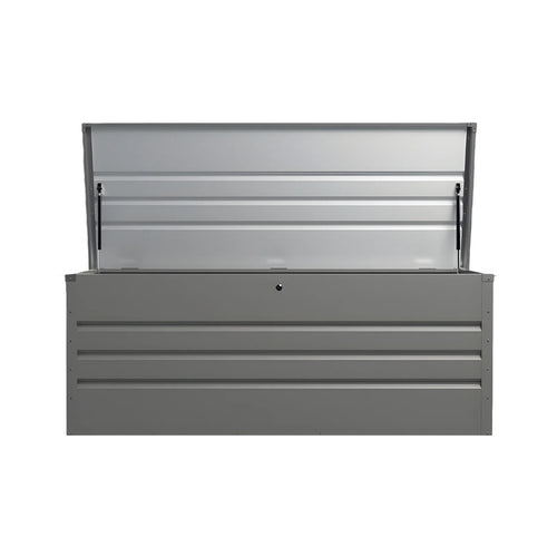 Arcón de almacenamiento metálico con tapa abatible y cerradura, acero galvanizado, gris