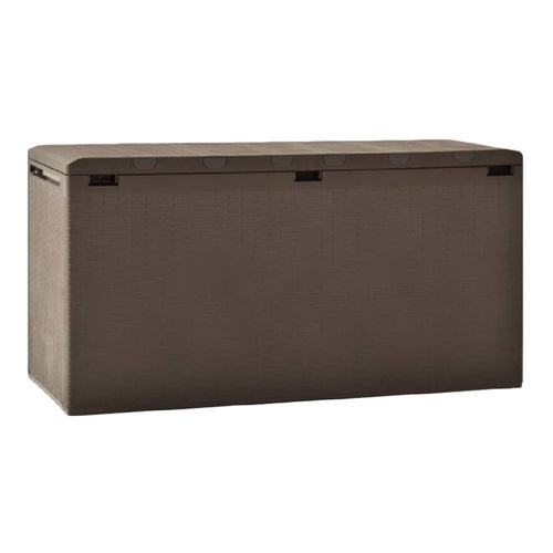 Baúl de almacenamiento de resina con acabado tipo ratán y tapa abatible, marrón